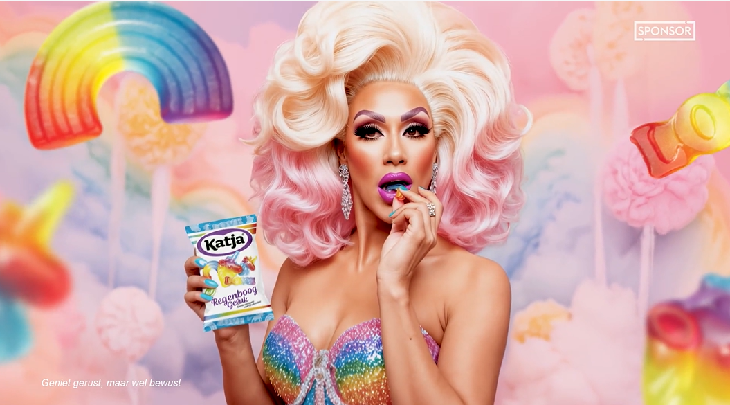 Jeroen van Eunen, Managing Director bij Katja Fassin B.V.: “Katja doet dingen graag anders. Zo zijn onze snoepjes sinds 2021 vegan en zetten we ons in voor de LHBTQIA+ community door onder andere deelname aan PRIDE Amsterdam. Een programma als Make Up Your Mind, waarin de artform van drag in de spotlight staat, sponsoren we dan ook met trots. Ook hebben we het gebruik van AI toegejuicht waarbij Regenboog Geluk, speciaal geïntroduceerd voor PRIDE, op een vernieuwende manier extra onder de aandacht wordt gebracht. Dragqueens zijn uniek en geven kleur aan de wereld. Ze zijn zeker niet te vervangen door AI want hun artform gaat verder dan looks. Daarom stralen er natuurlijk dragqueens bij ons aan boord tijdens de PRIDE Amsterdam. Een uitstapje naar AI is daarom ook zeker een primeur voor ons”