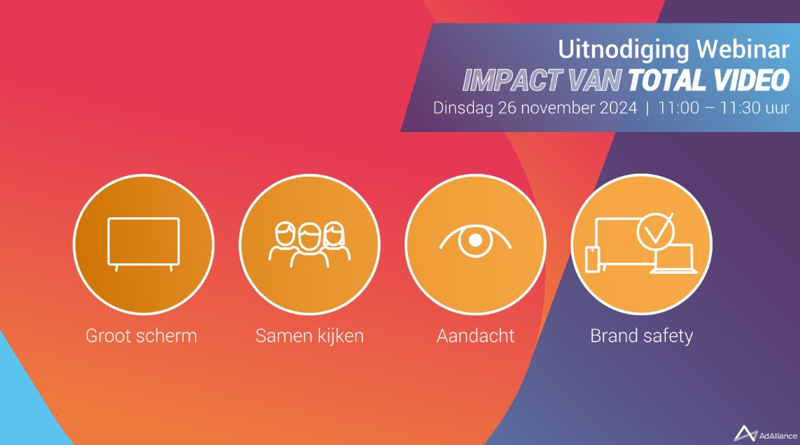 In het webinar gaan Mirte van Deursen (Ad Alliance) en Tom van Bommel (Unravel Research) dieper in op al deze aspecten en de nieuwste onderzoeksresultaten delen. Dit is je kans om waardevolle inzichten op te doen over Total Video.